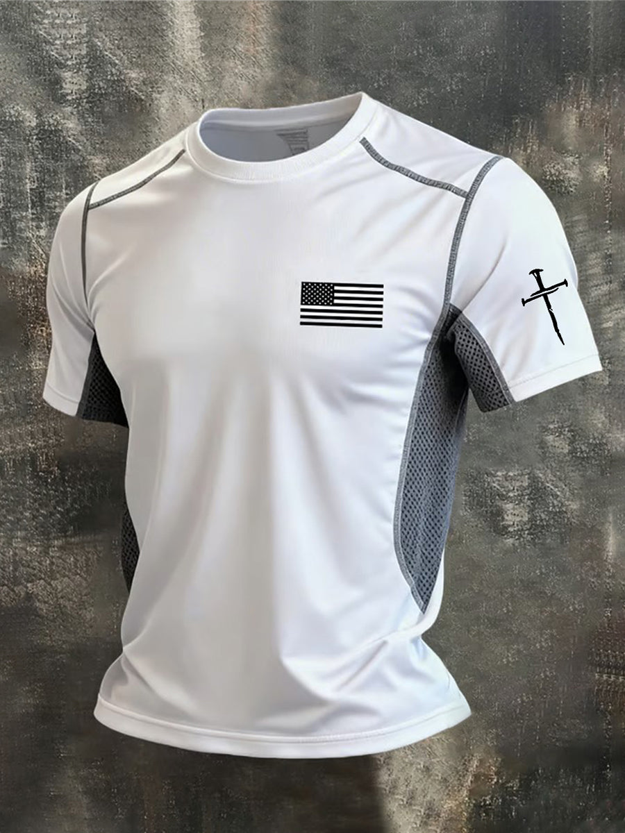Men's Faith Cross And American Flag Print T-Shirt