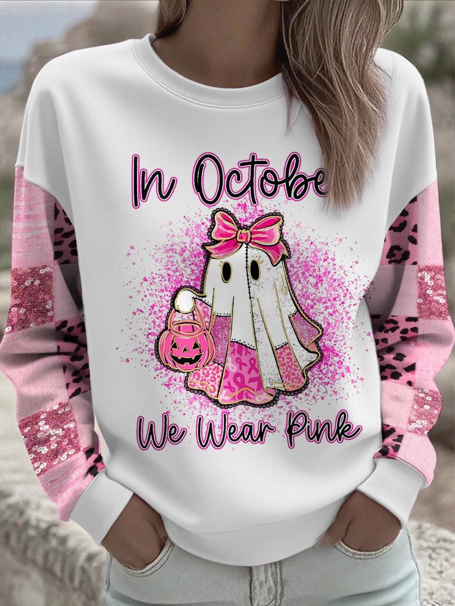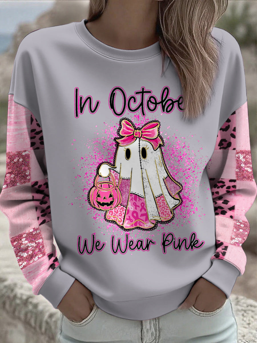 Women's Breast Cancer Awareness Floral Printed Sweatshirt