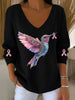 Women's Breast Cancer Awareness Hummingbird Print Casual Top