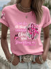 Women's Breast Cancer Awareness Pink Ribbon Faith Cross Short Sleeve T-shirt