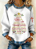 Women's Christian Christmas Faith Cross Print Denim Patchwork Top