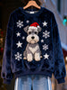 Women's Christmas Cute Schnauzer Print Casual Flannel Sweatshirt