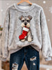 Women's Christmas Cute Schnauzer Print Casual Flannel Sweatshirt