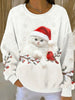 Women's Cute Christmas Cat Art Print Casual Flannel Hoodie