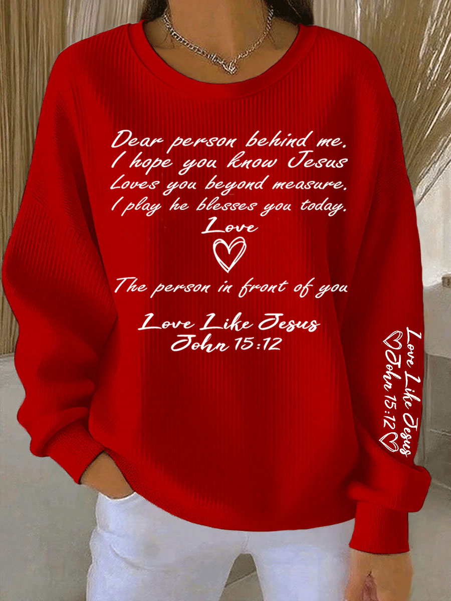 Women's Dear Person Behind Me Ribbed Round-Neck Sweatshirt