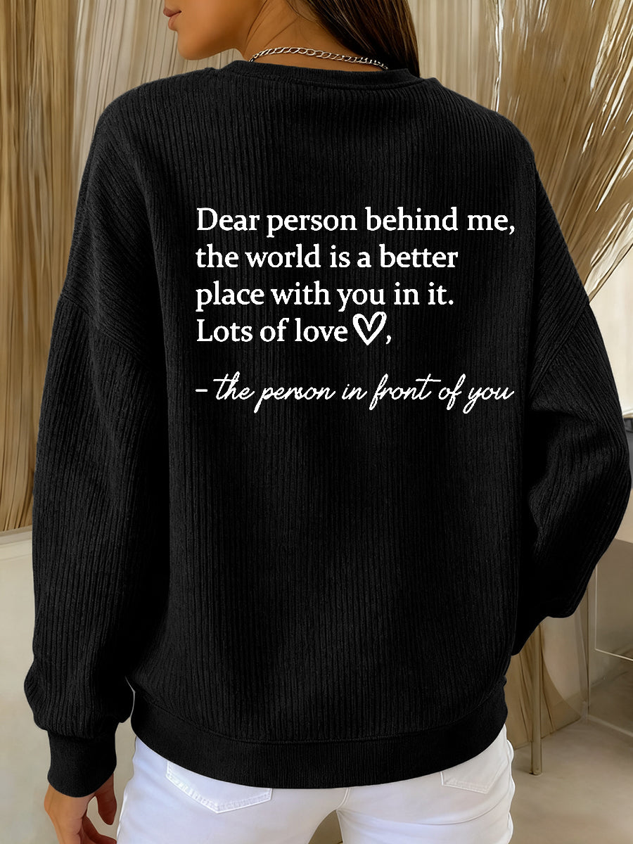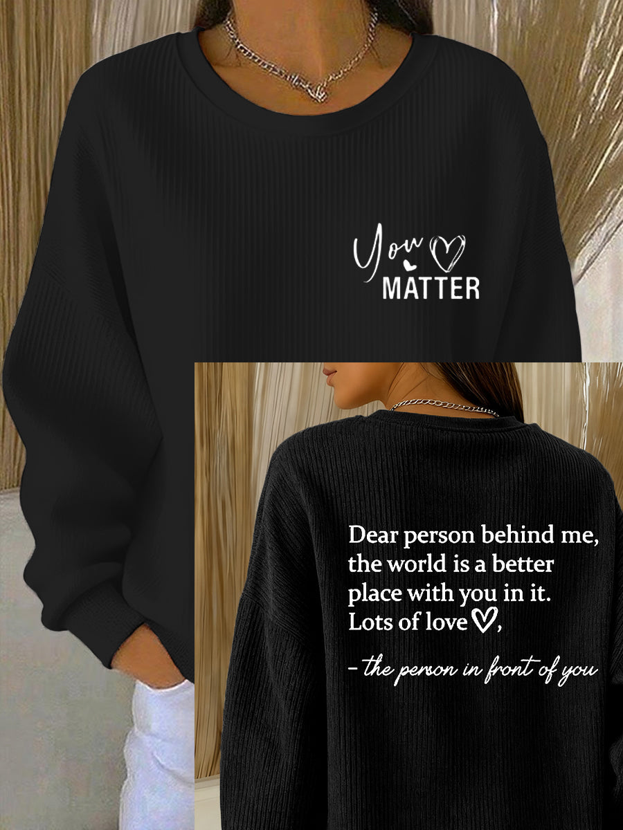 Women's Dear Person Behind Me You Matter Printed Ribbed Round-Neck Sweatshirt