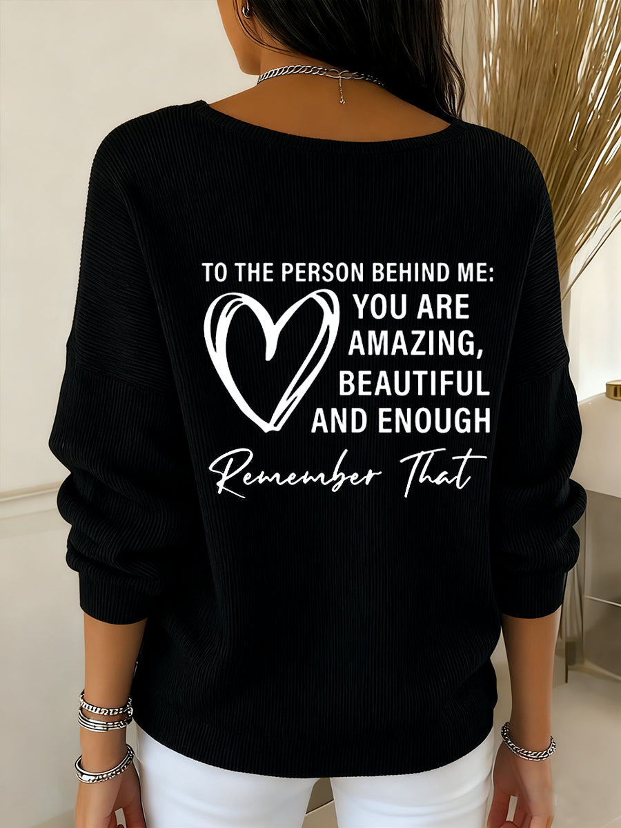 Women's Dear Person Behind Me You Matter Printed V-Neck Ribbed Top