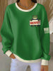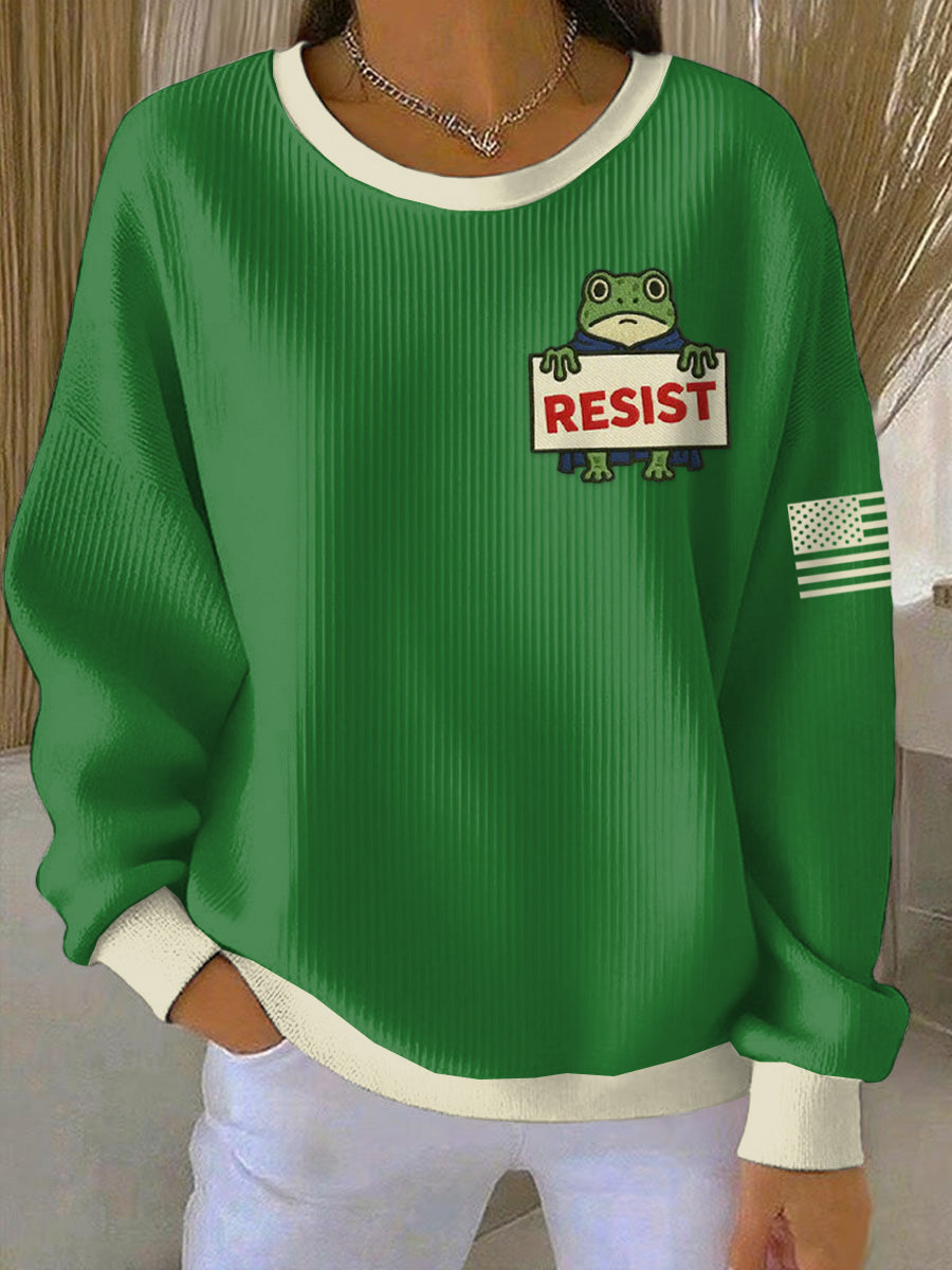 Women's FDT Polish Frog Print Ribbed Round-Neck Sweatshirt