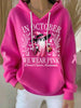 Women's In October We Wear Pink Halloween Pink Ghost Print Breast Cancer Awareness Hoodie