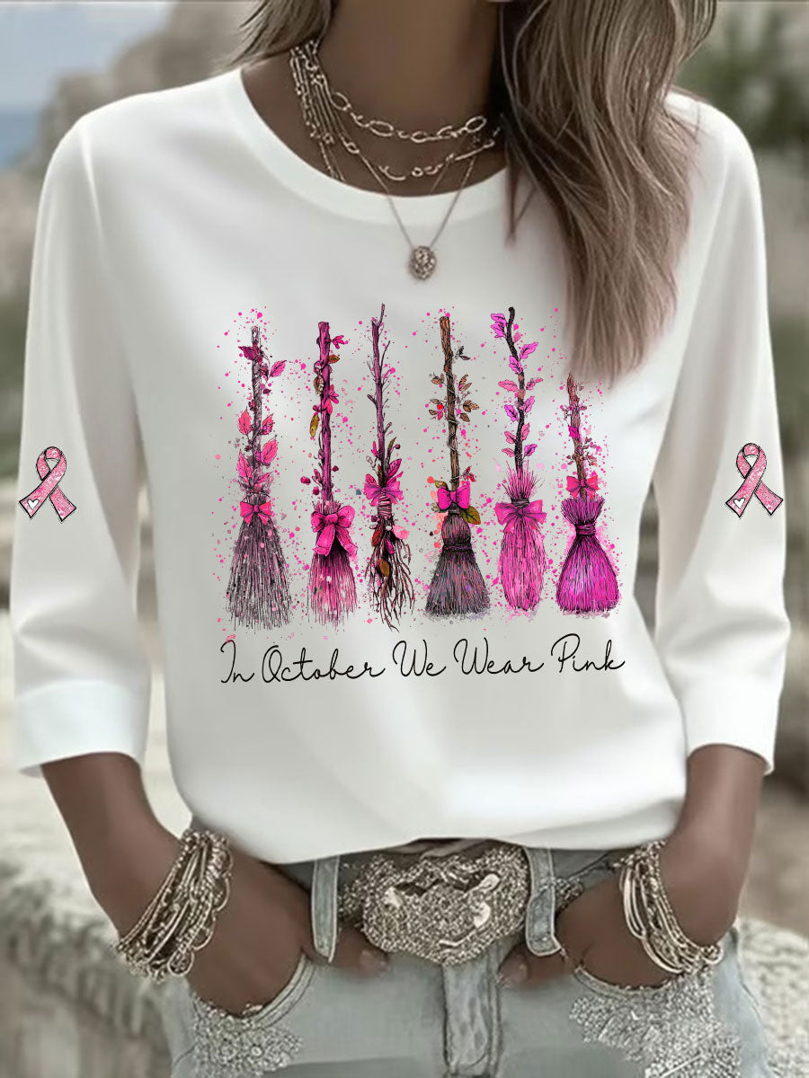 Women's In October We Wear Pink Printed Casual T-shirt