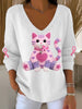 Women's Pink Cat Pink Ribbon Breast Cancer Awareness Support Long-Sleeve Top