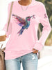 Women's Pink Hummingbird Print Casual Sweatshirt