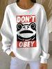 Women's Polish Frog Print Ribbed Round-Neck Sweatshirt