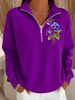 Women's Purple Art Design Printed Zipper Stand Collar Sweatshirt